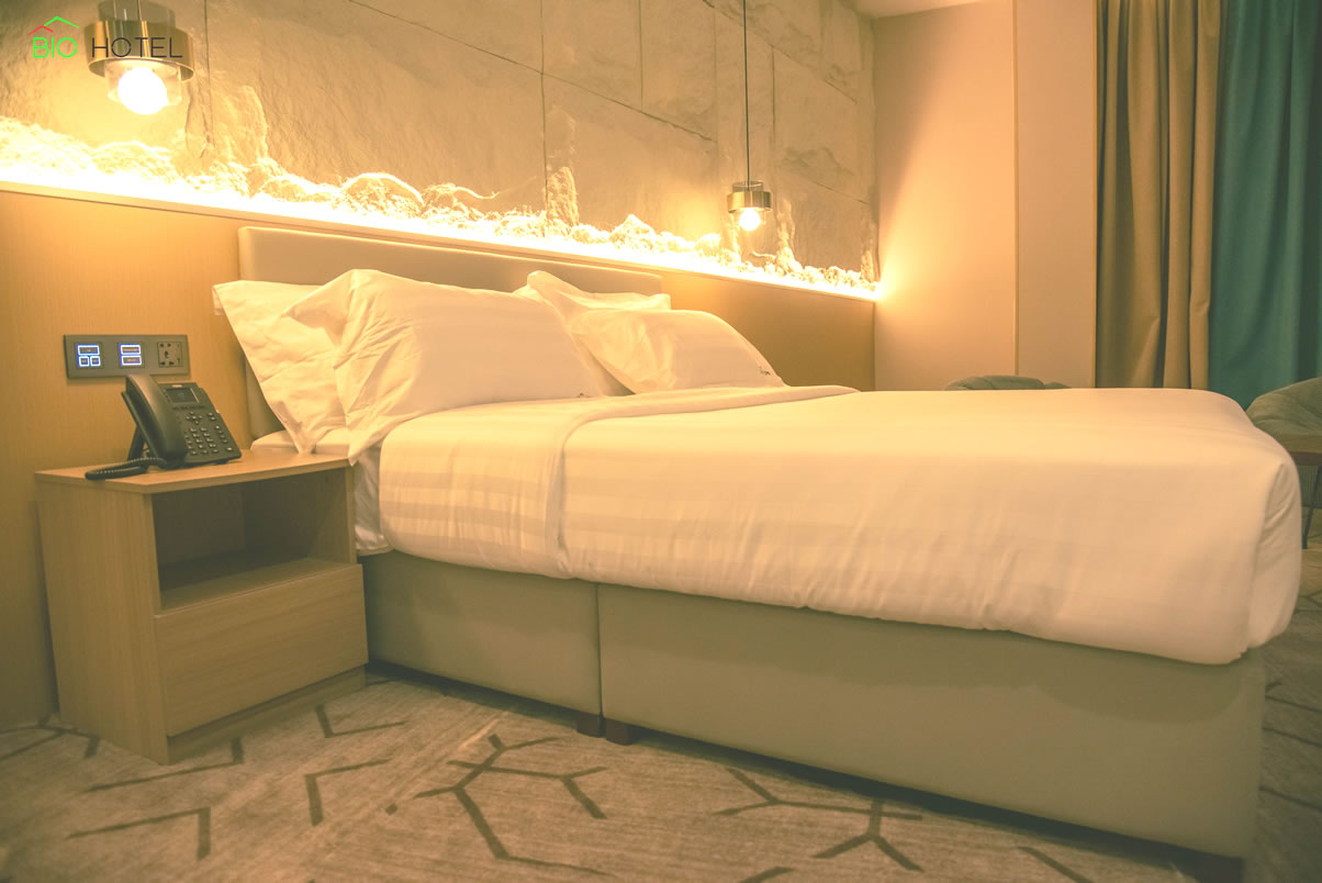 Les chambres et suites de Bio Hotel allient élégance, fonctionnalité et sérénité. Elles sont équipées d’une literie confortable, de la climatisation, d’une connexion Wi-Fi haut débit, d’un espace de travail et de toutes les commodités nécessaires pour un séjour agréable. Que vous soyez en déplacement professionnel ou en vacances, vous profitez d’un espace propice au repos et à la détente.